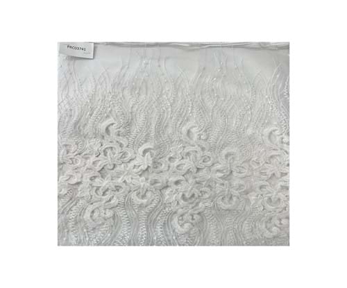 0,5 METRE İŞLEMELİ TÜL KUMAŞ - EKRU