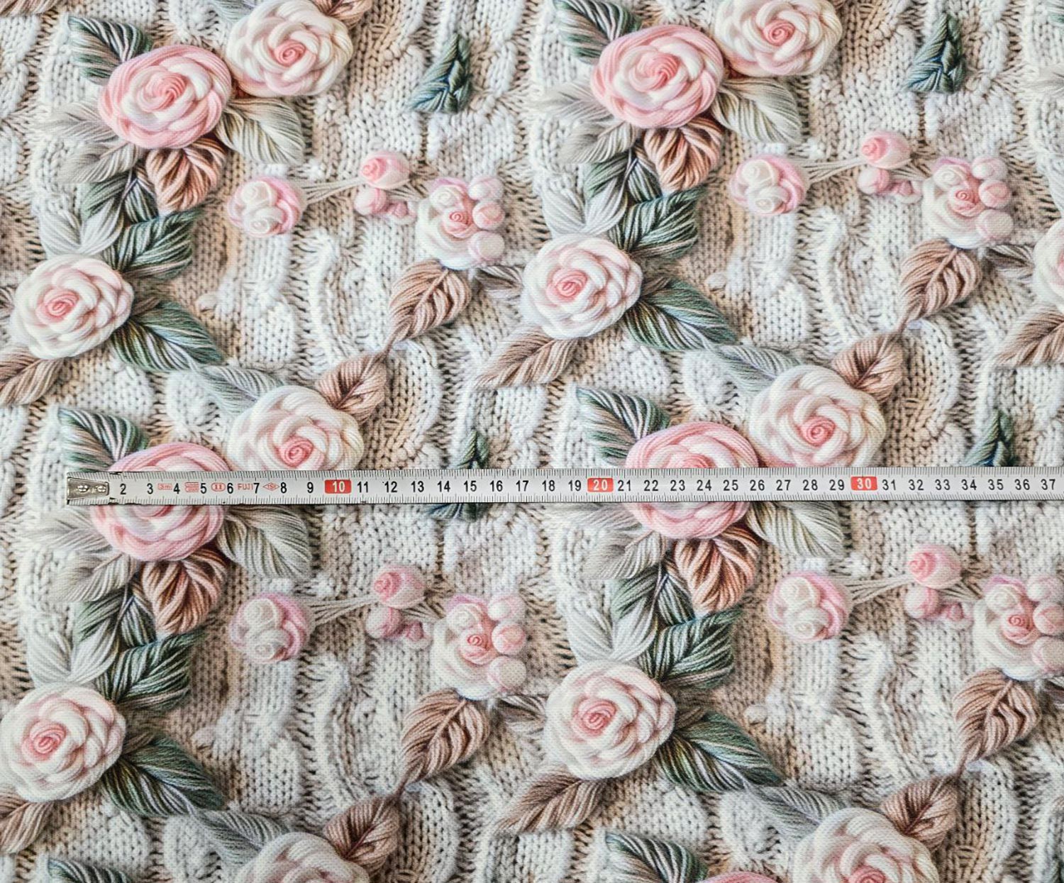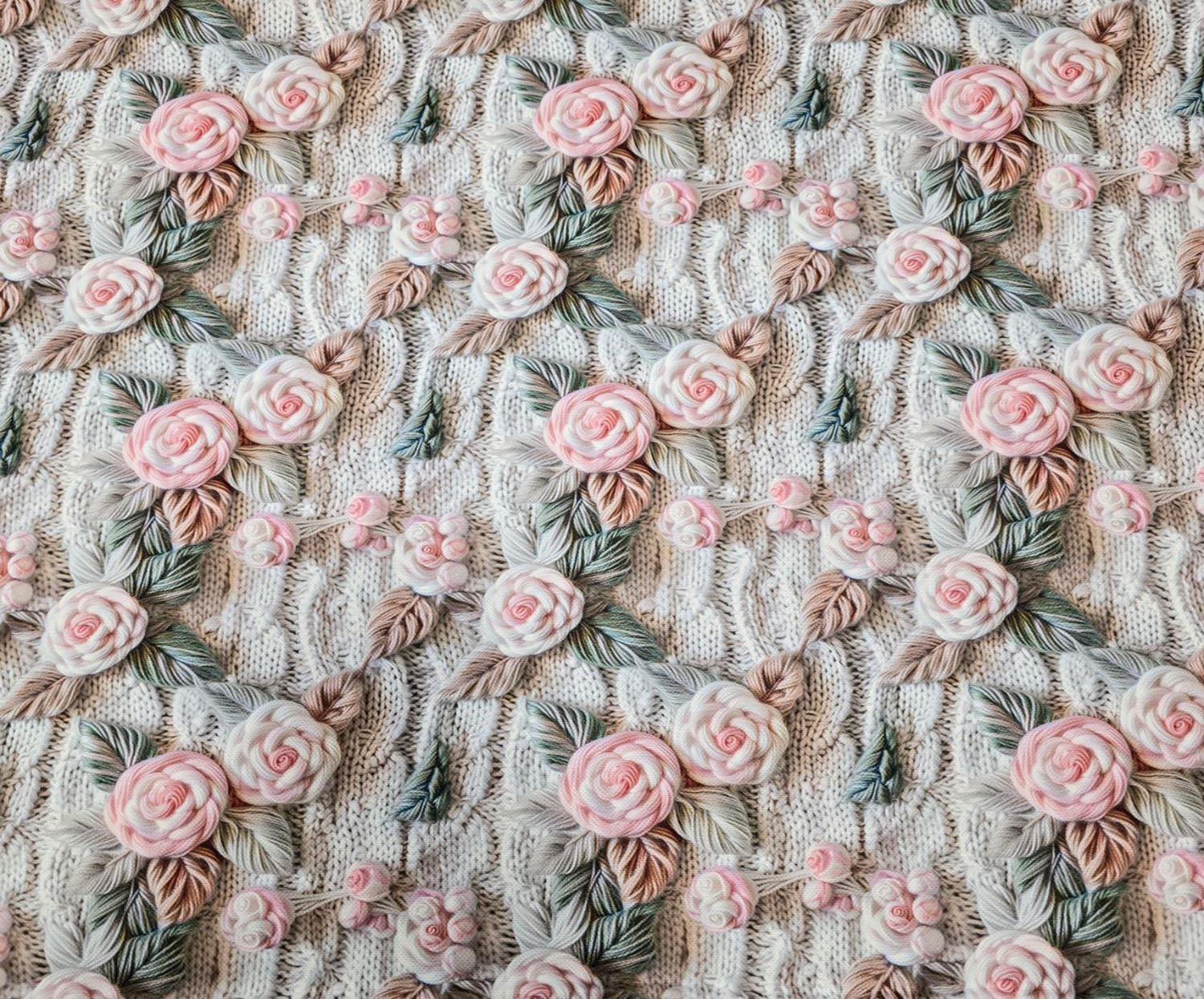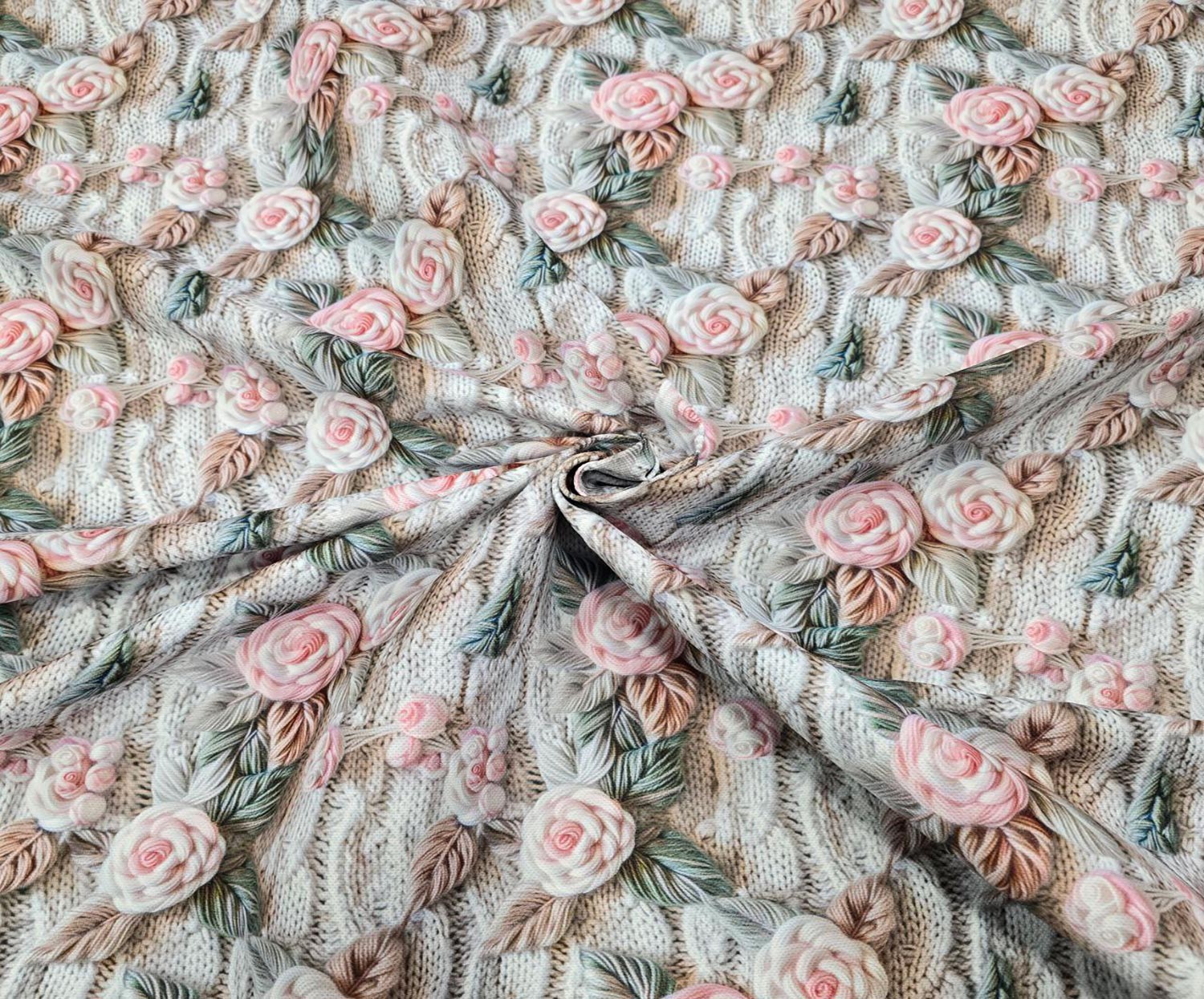 3D ÇİÇEKLİ DİJİTAL BASKI KUMAŞ - BEJ