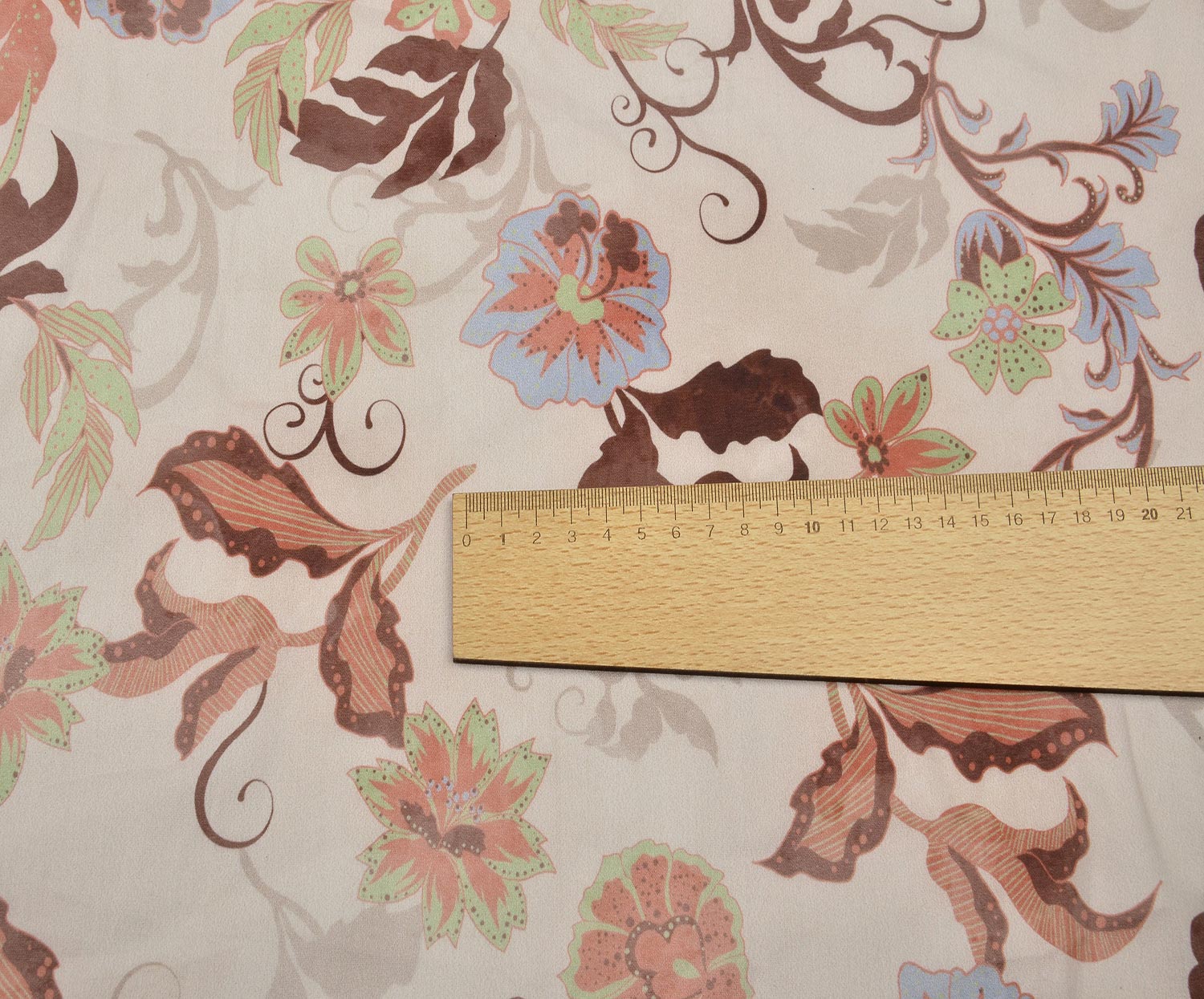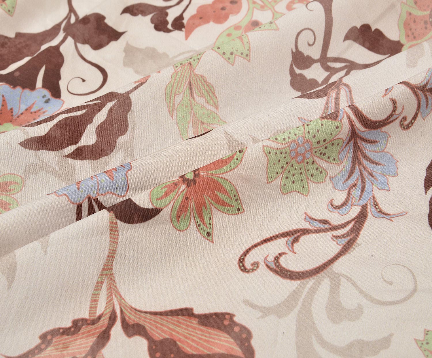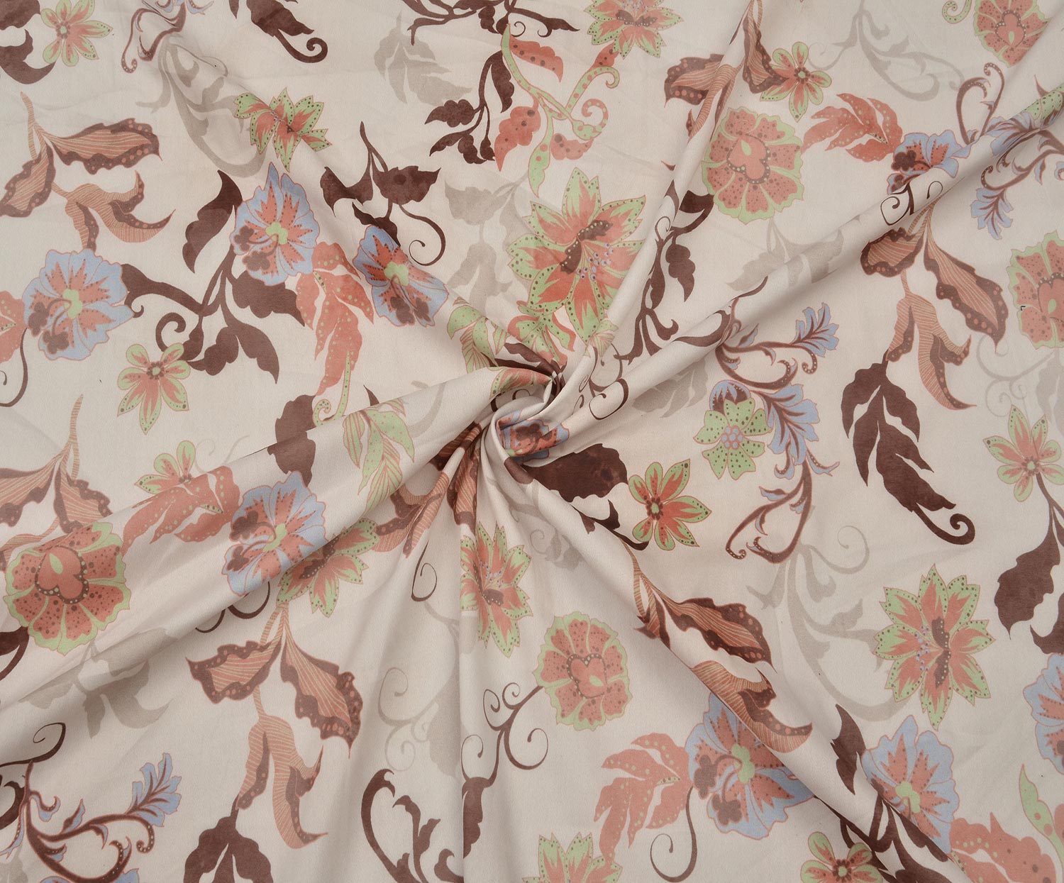 ÇİÇEK DESENLİ LİKRALI VİSKON KUMAŞ - EKRU