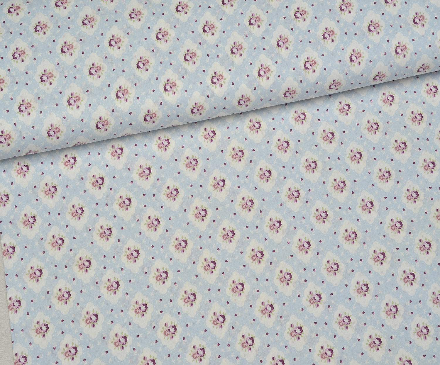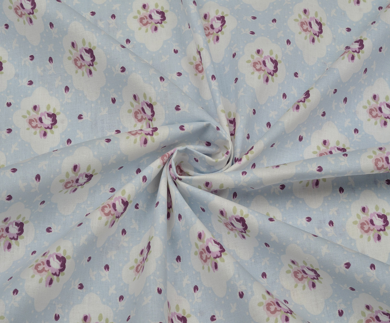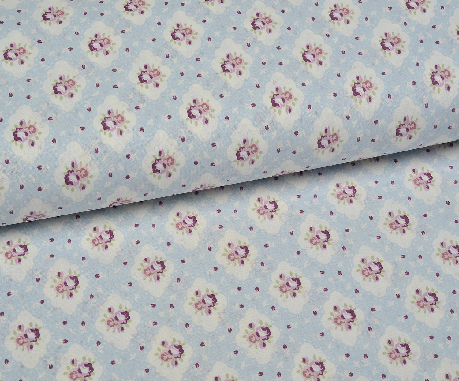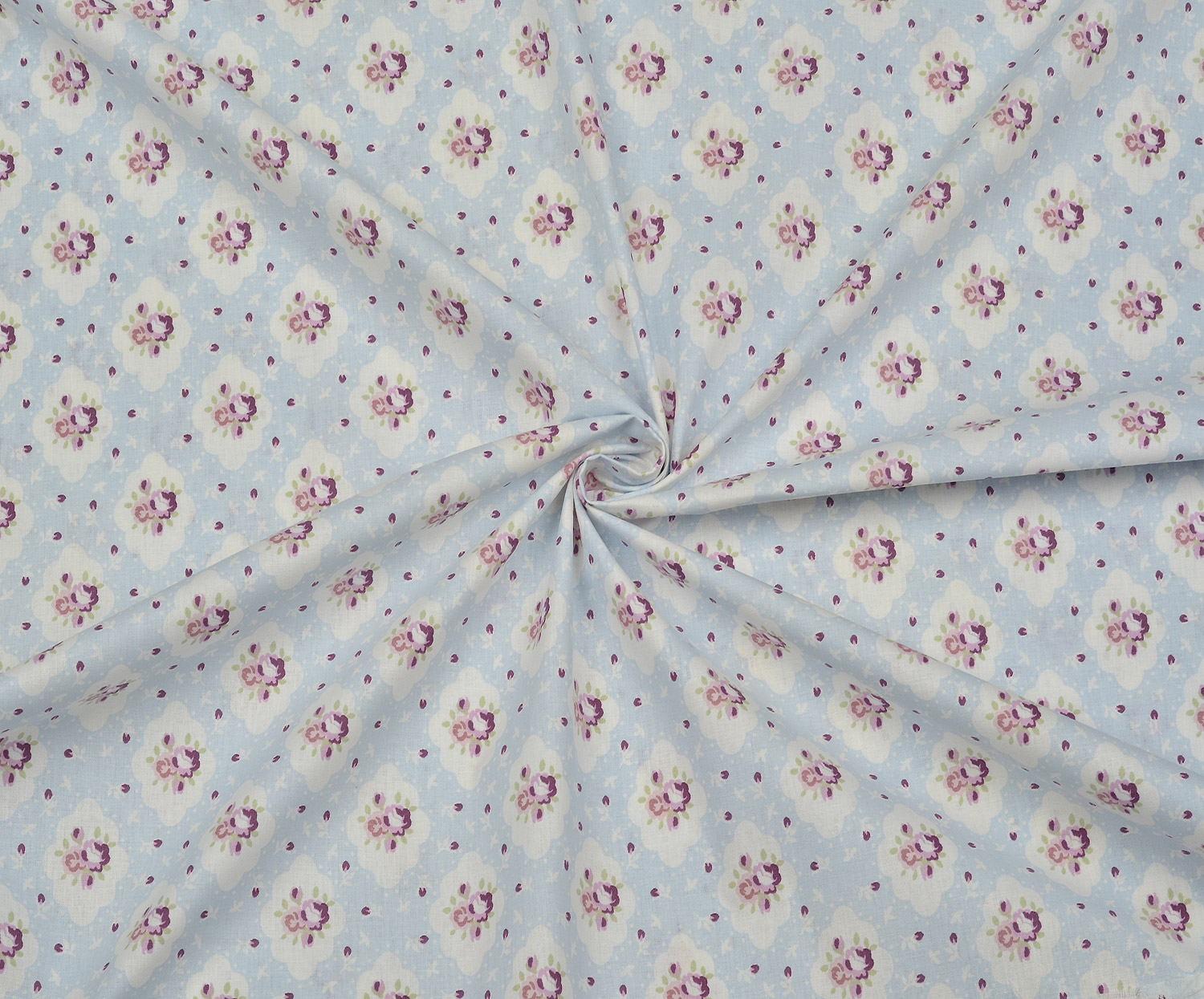 ÇİÇEKLER POPLİN KUMAŞ - MAVİ