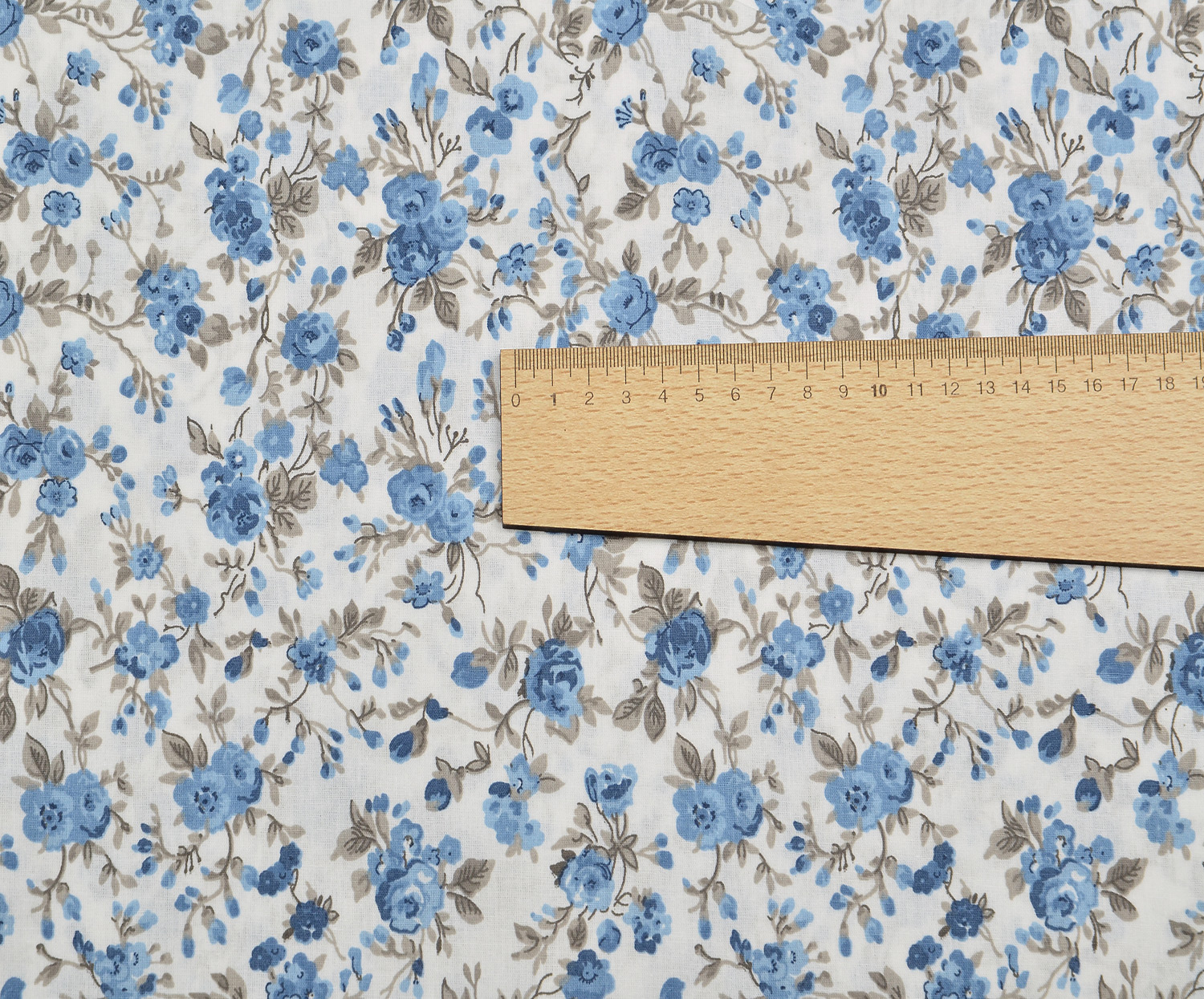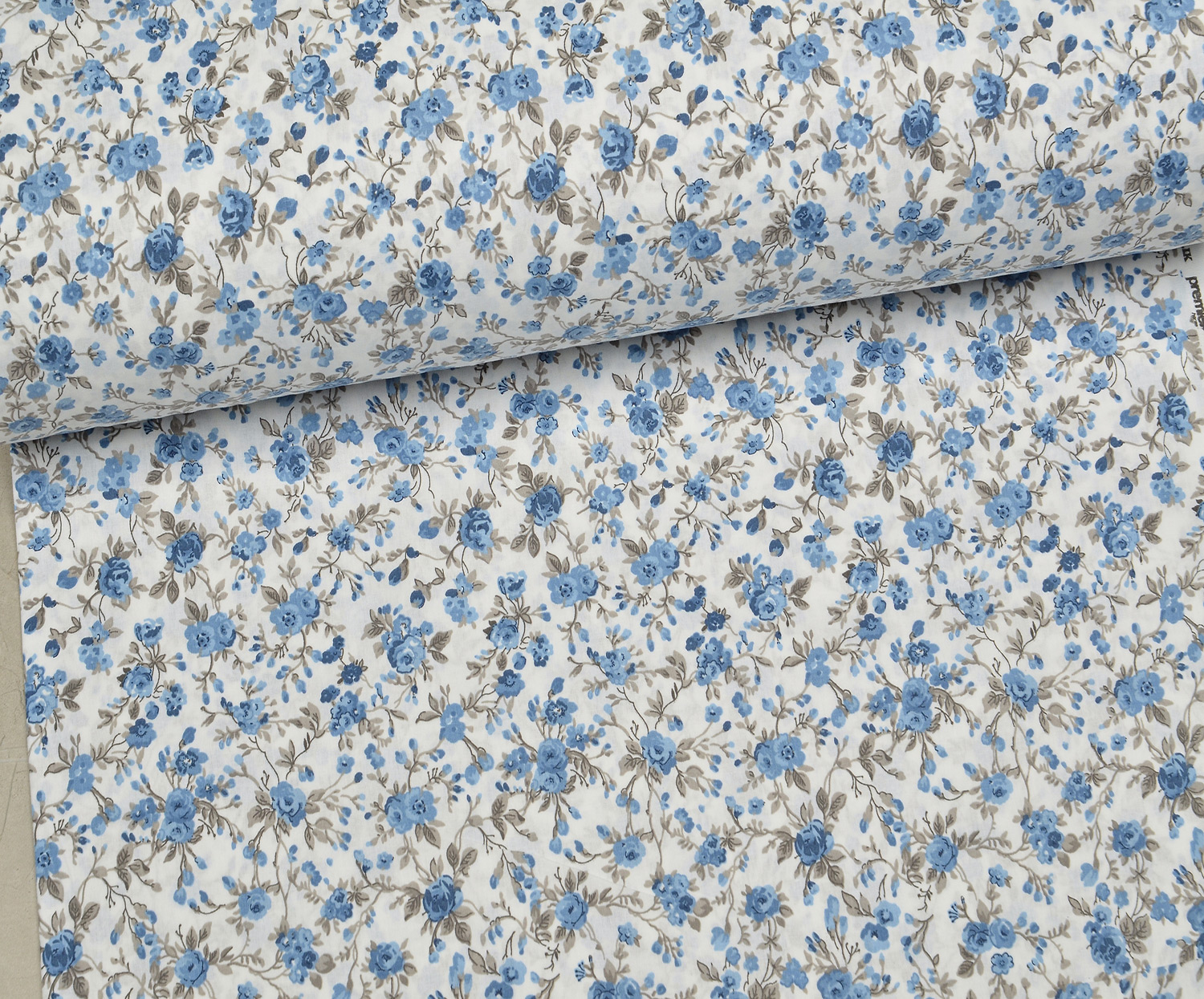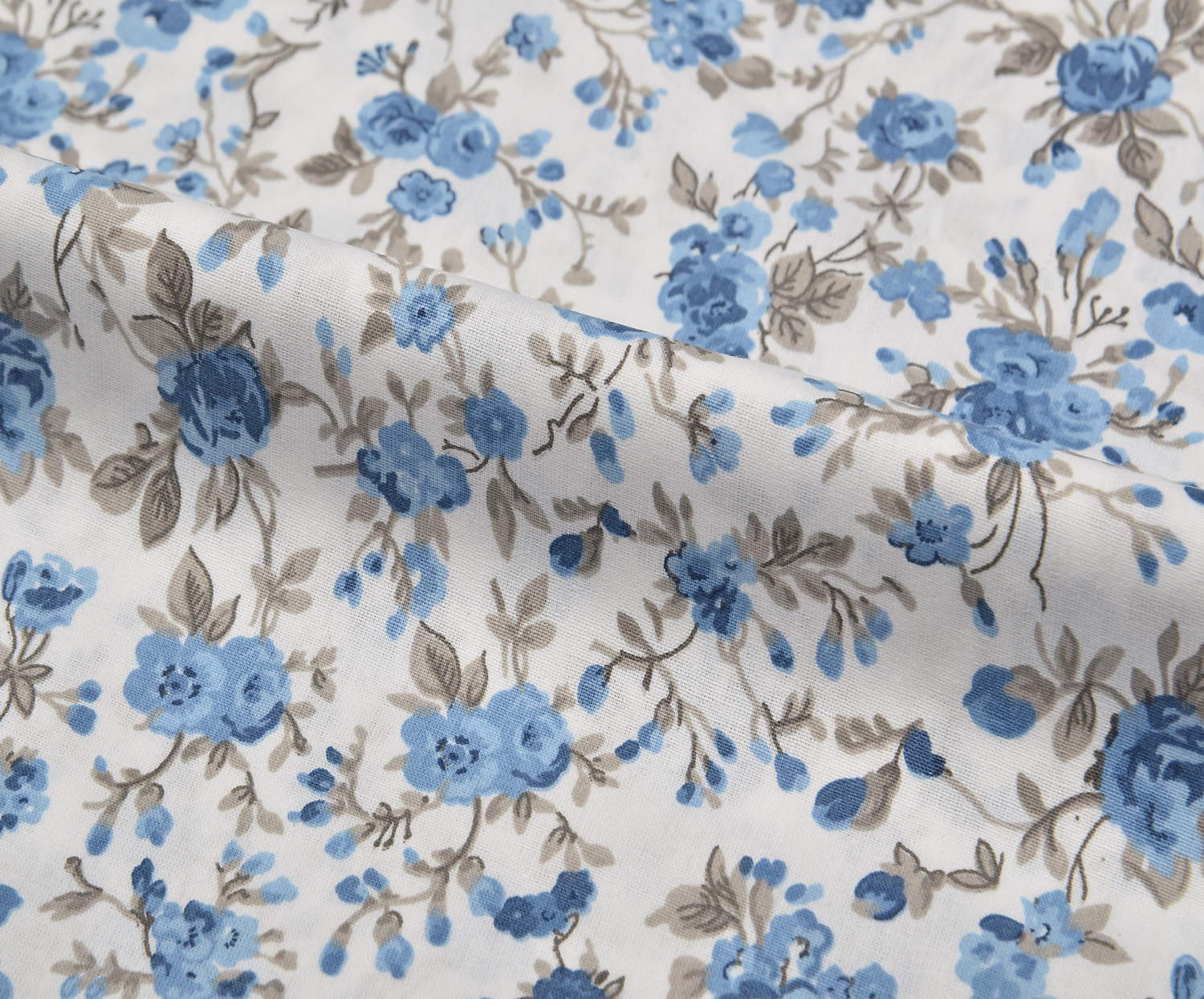 ÇİÇEKLER POPLİN KUMAŞ - MAVİ