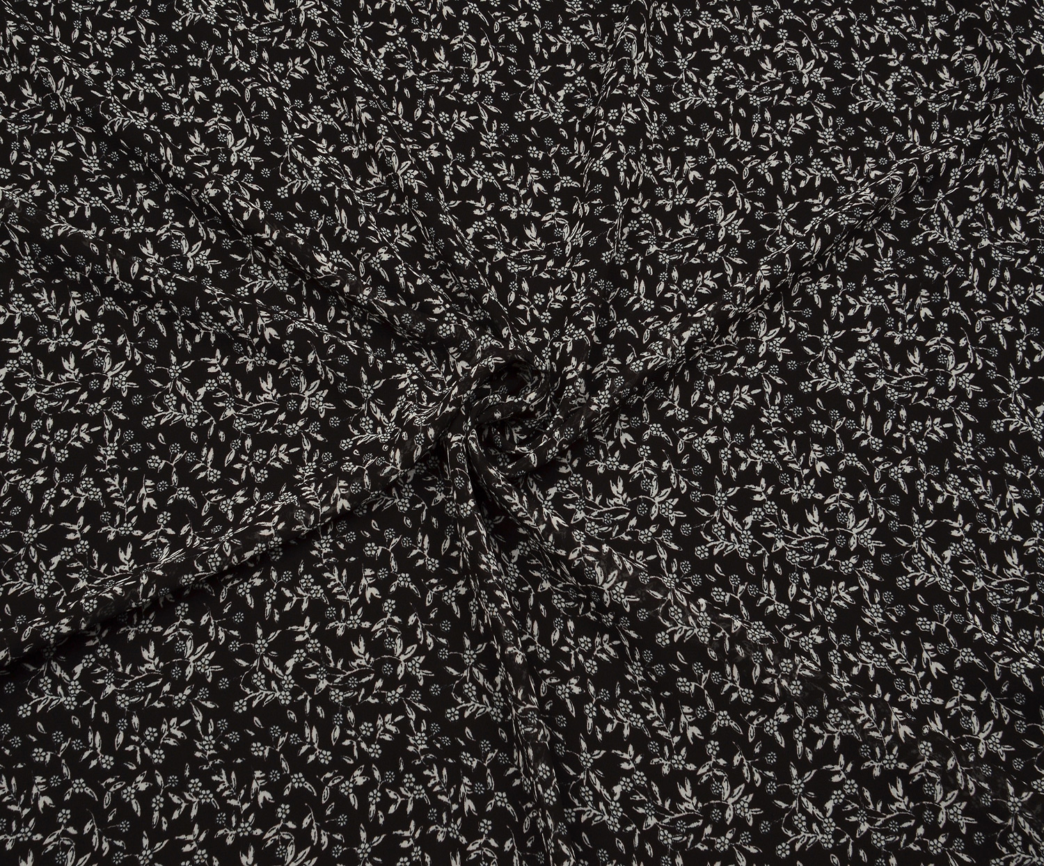 ÇITIR ÇİÇEKLİ ŞİFON KUMAŞ - SİYAH