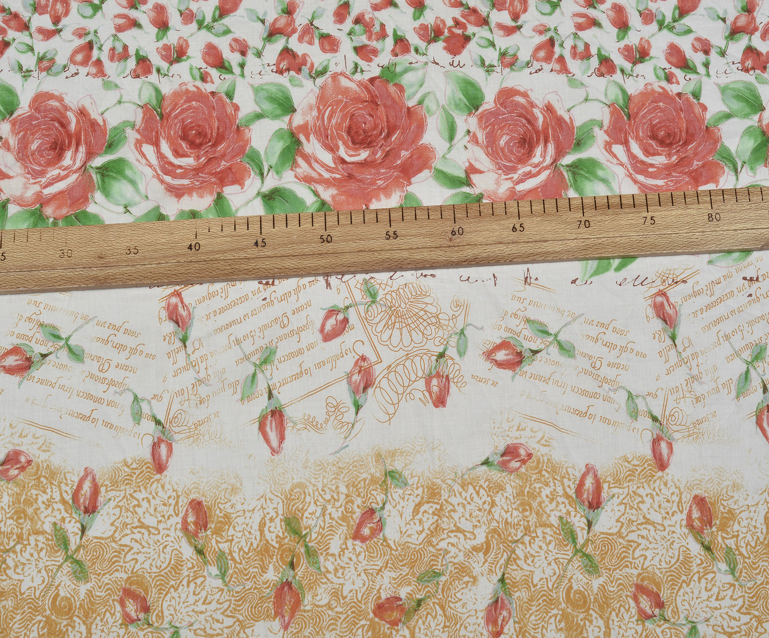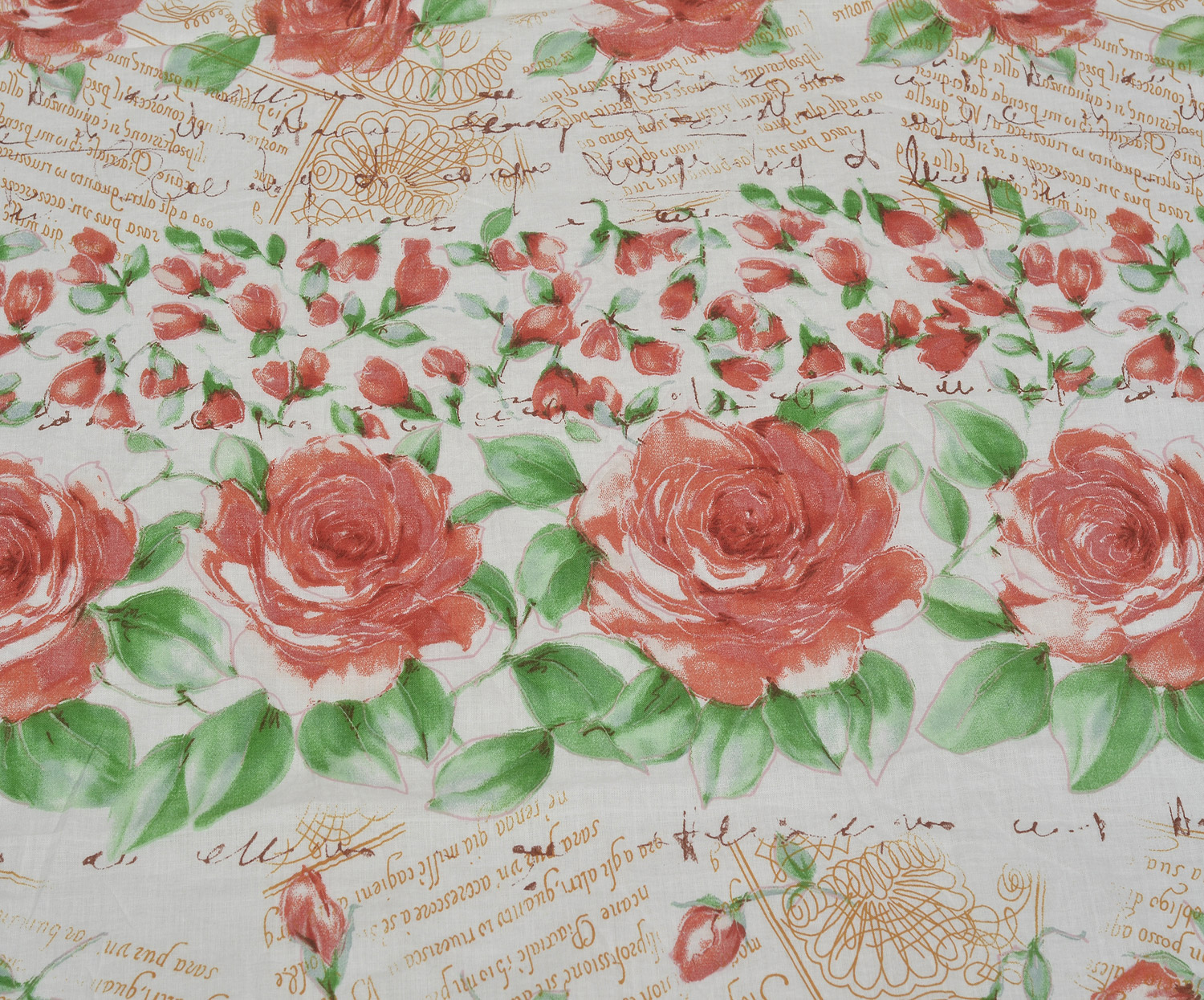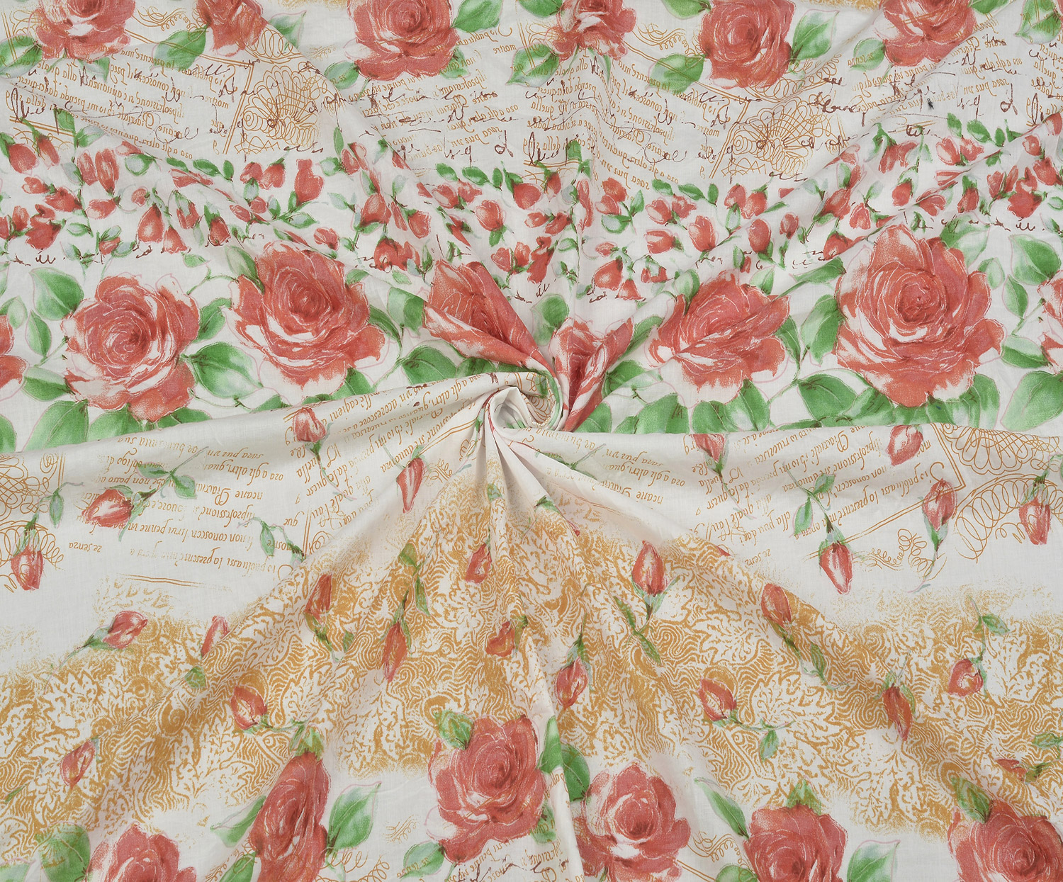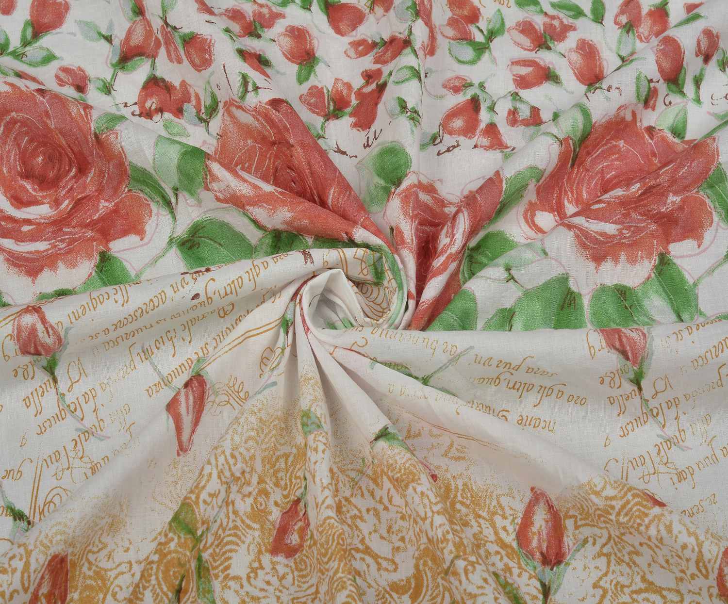 GÜL DESENLİ PAMUK KUMAŞ - EKRU