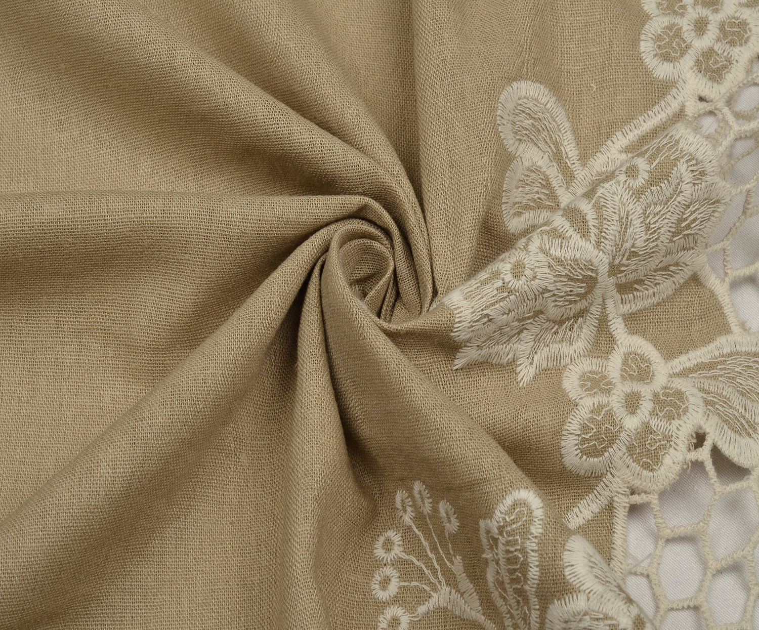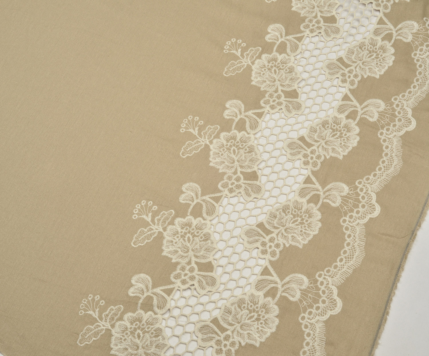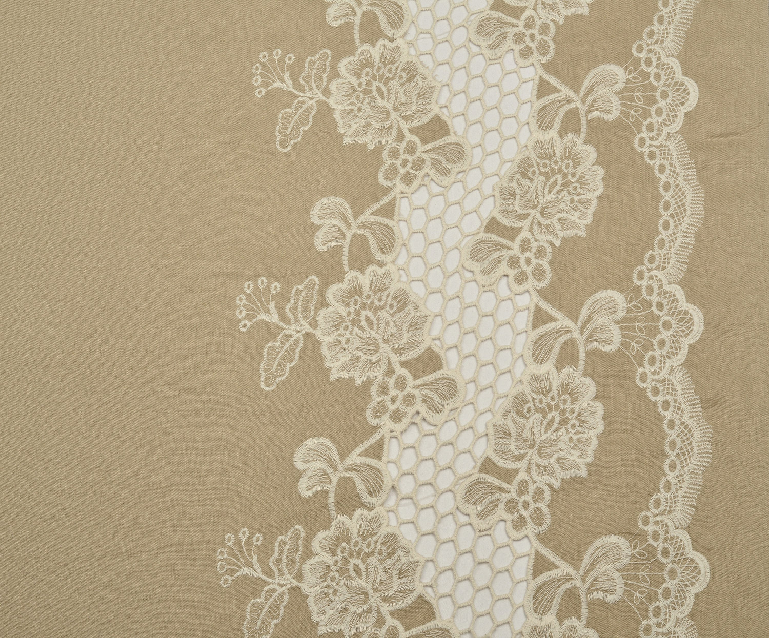 İŞLEMELİ KETEN BRODE KUMAŞ - BEJ