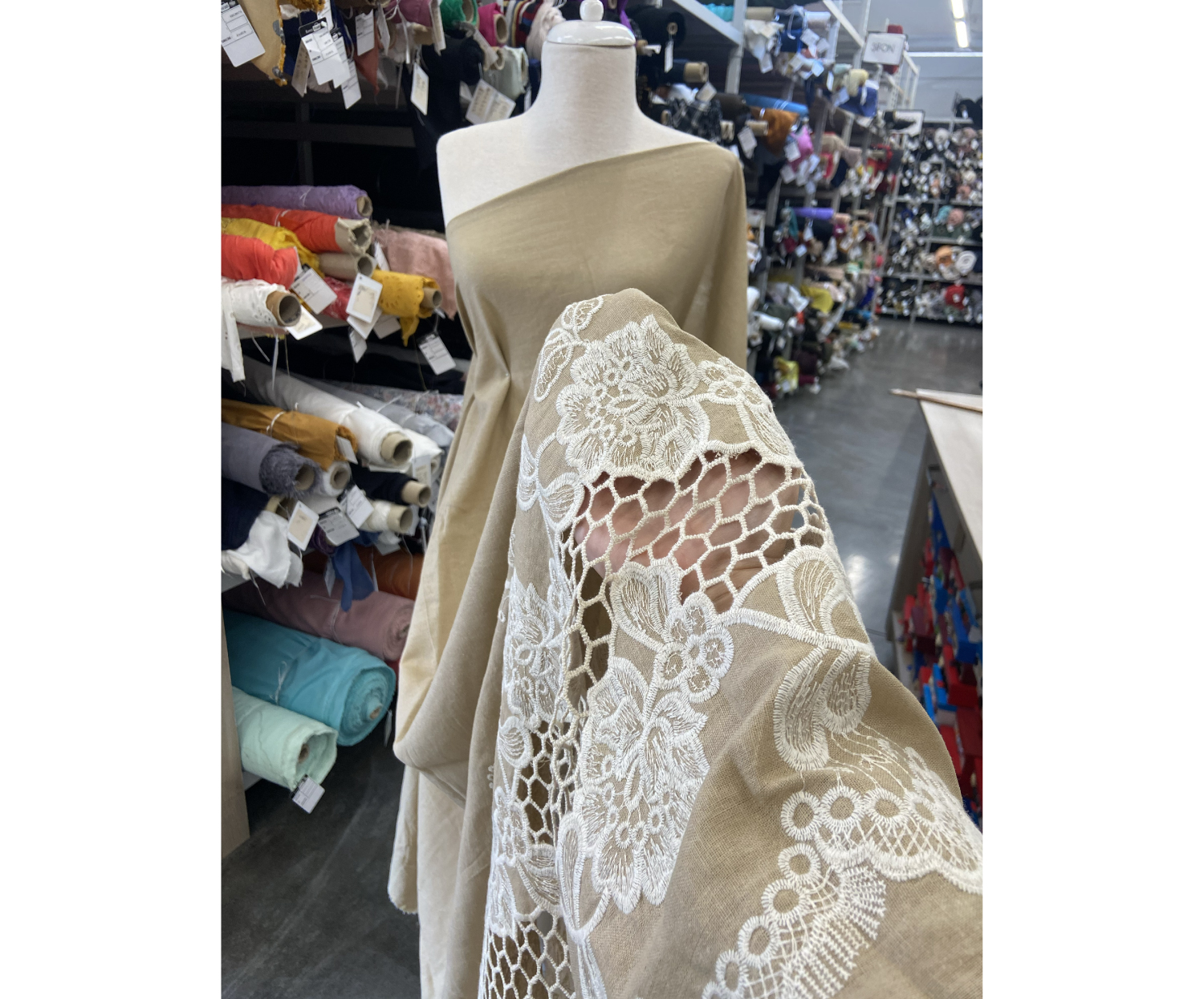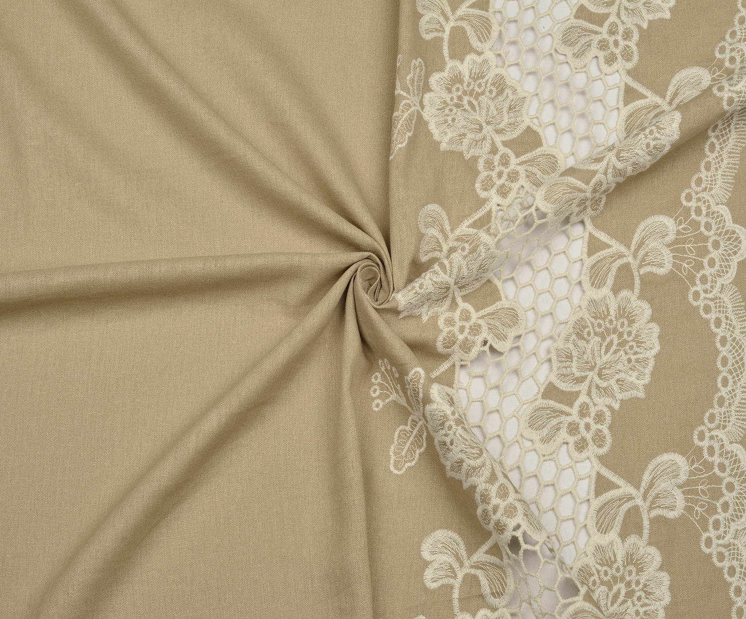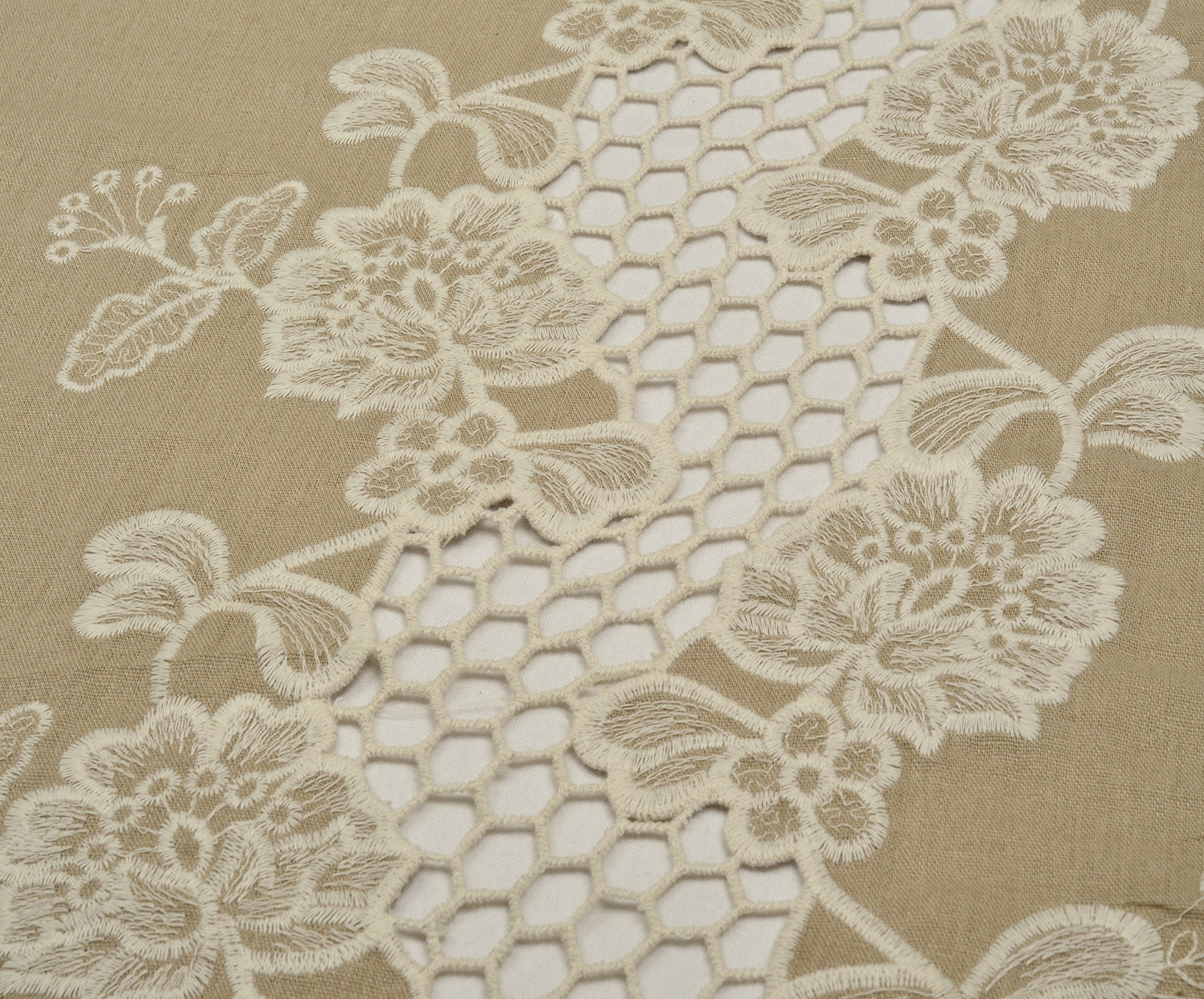 İŞLEMELİ KETEN BRODE KUMAŞ - BEJ
