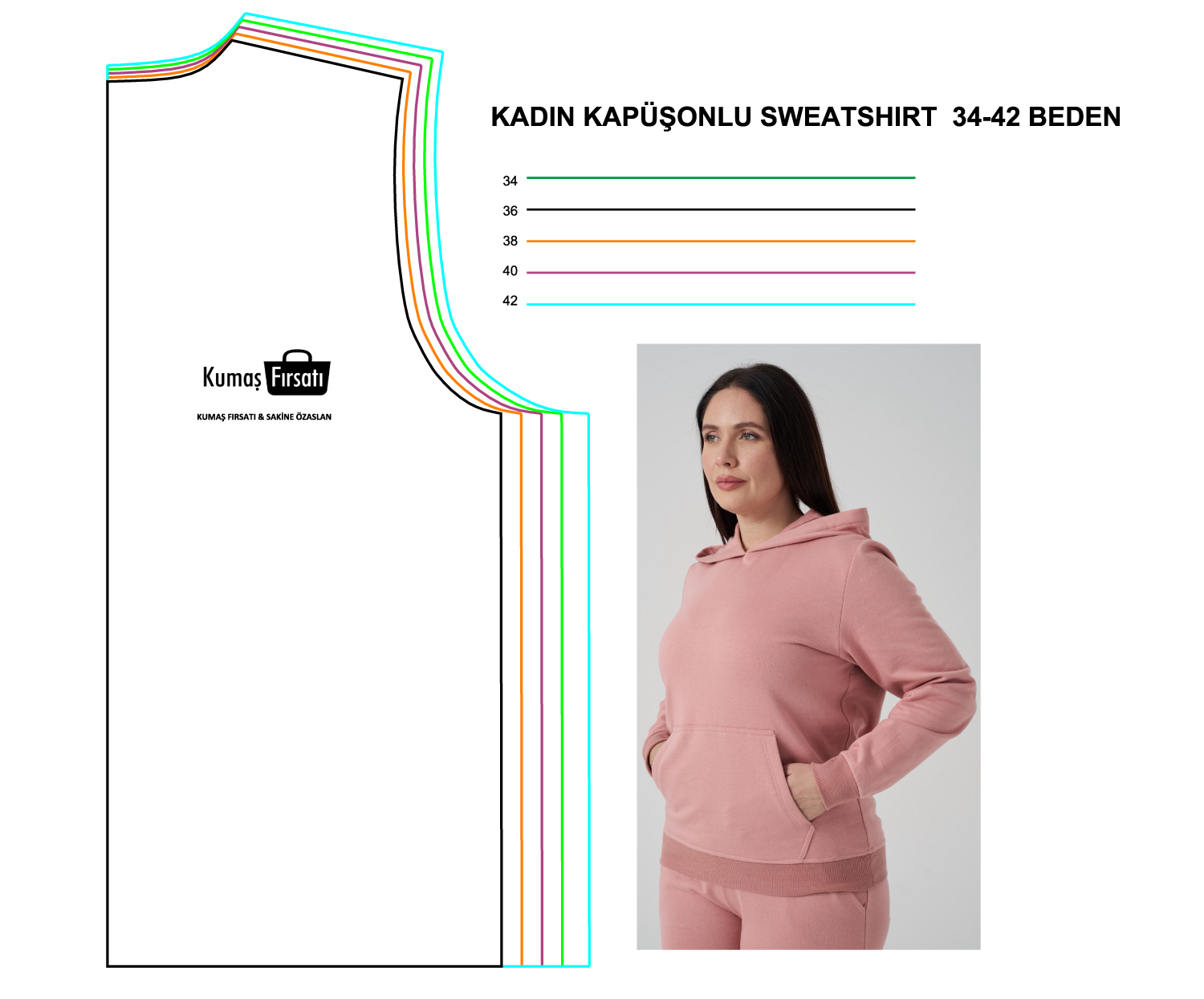 KADIN KAPŞONLU SWEATSHIRT KALIBI 34-42 BEDEN
