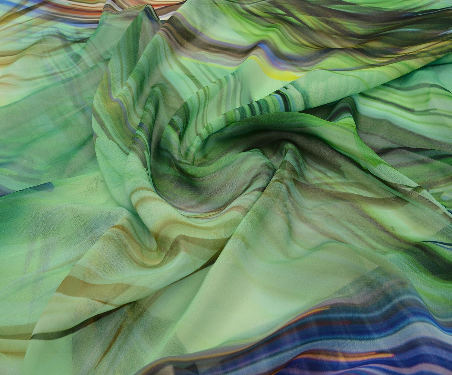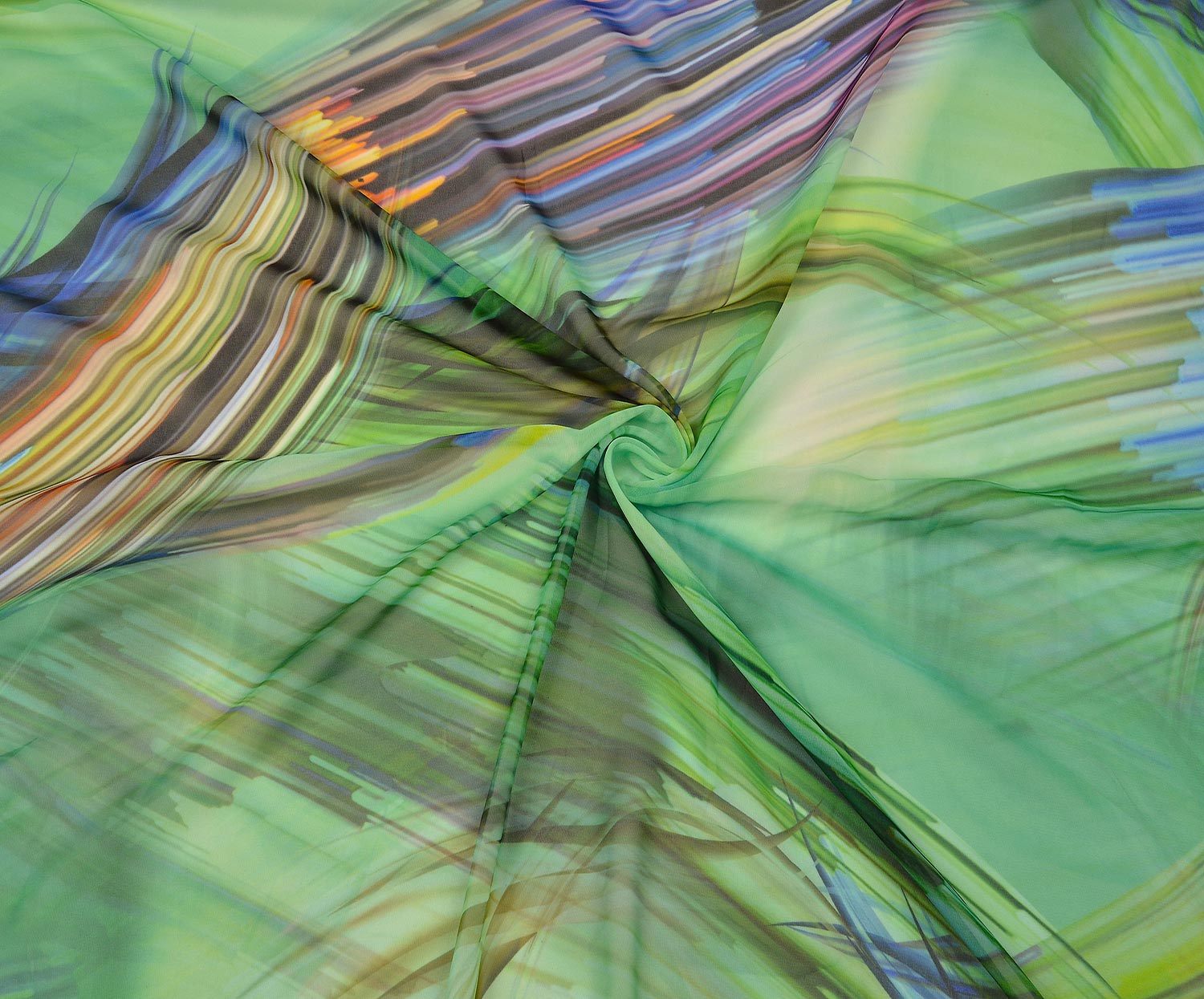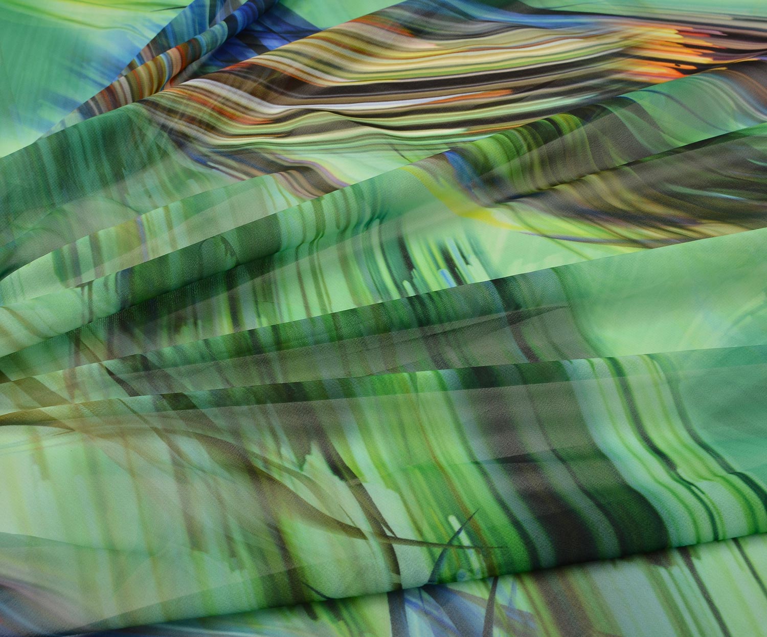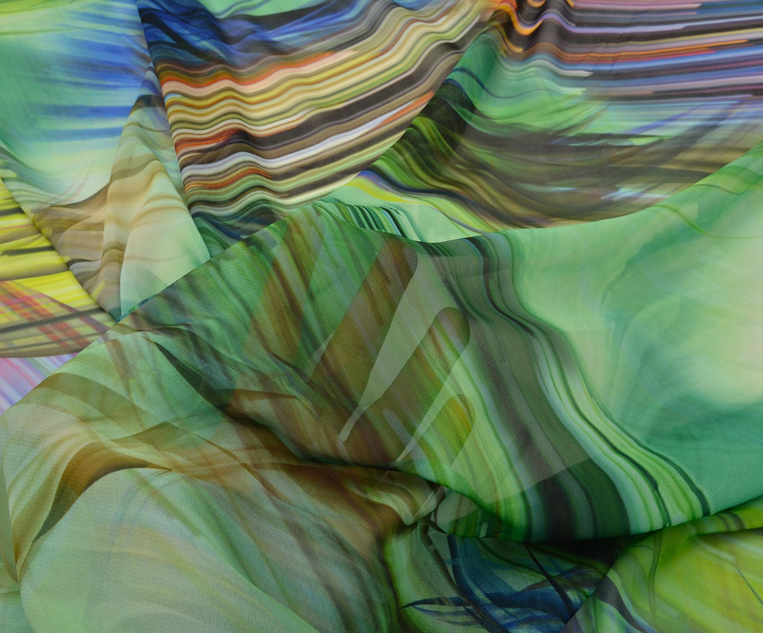 RENKLİ ÇİÇEKLİ ŞİFON KUMAŞ - YEŞİL