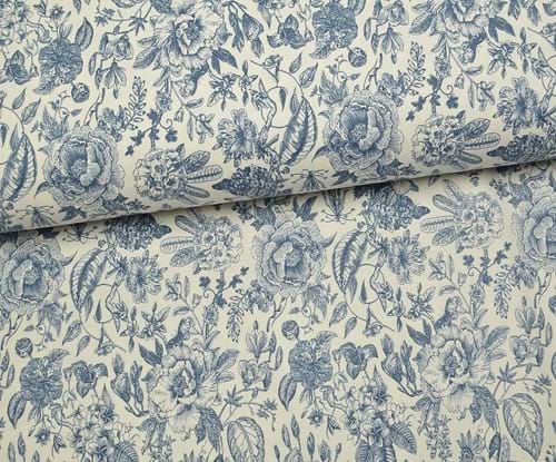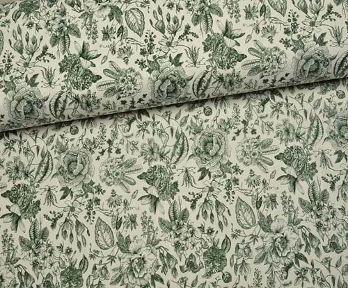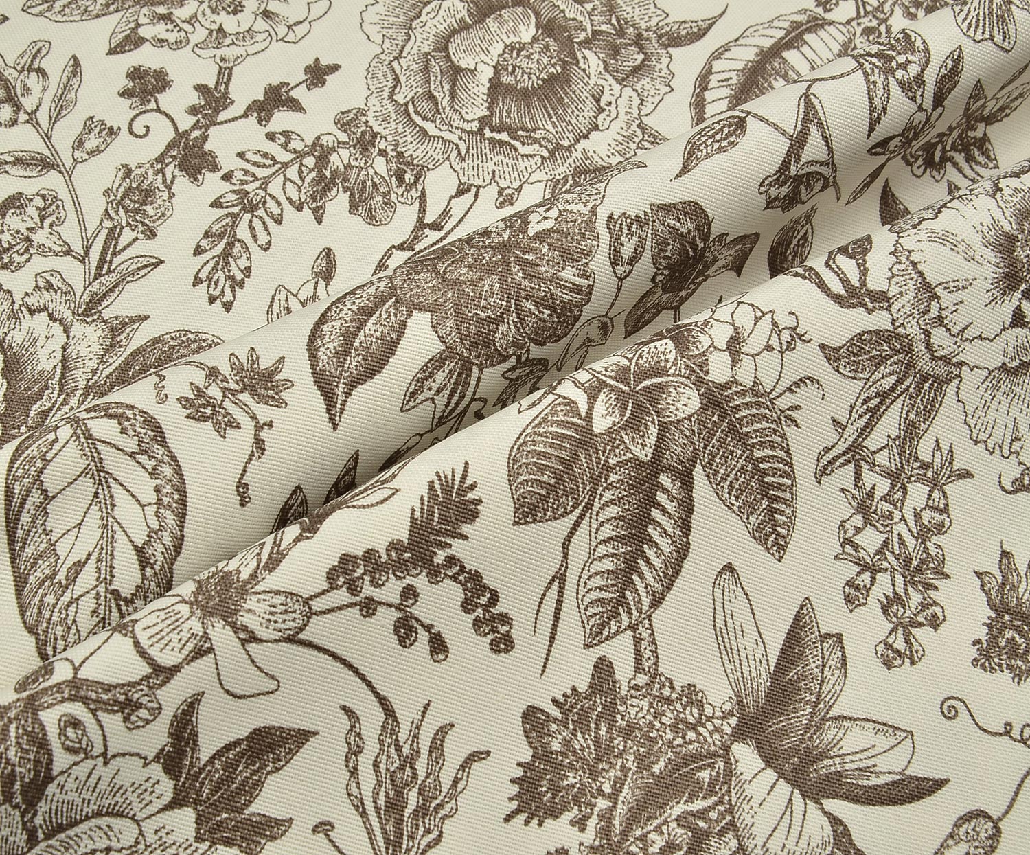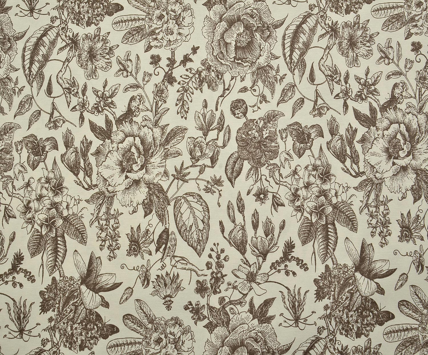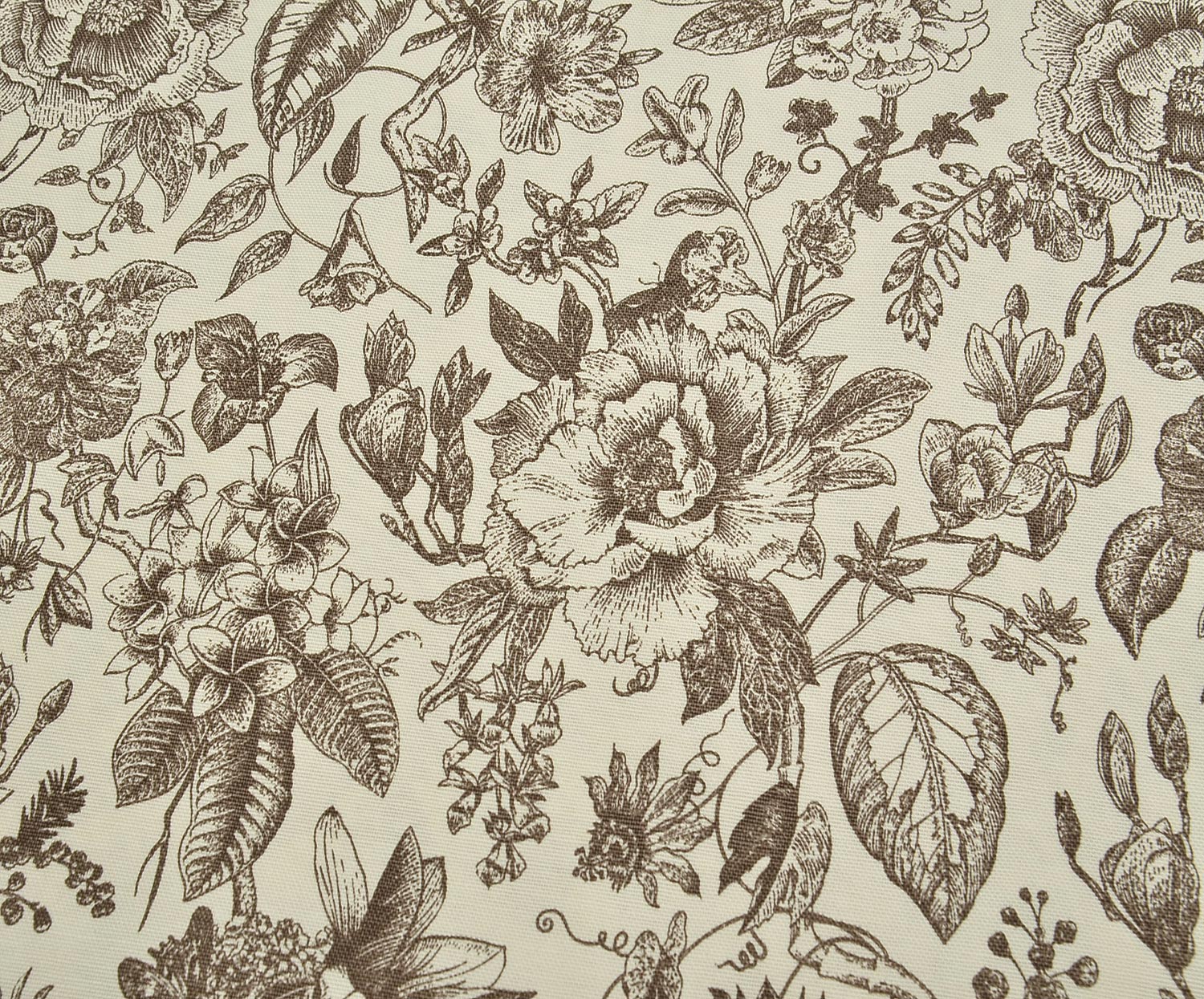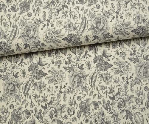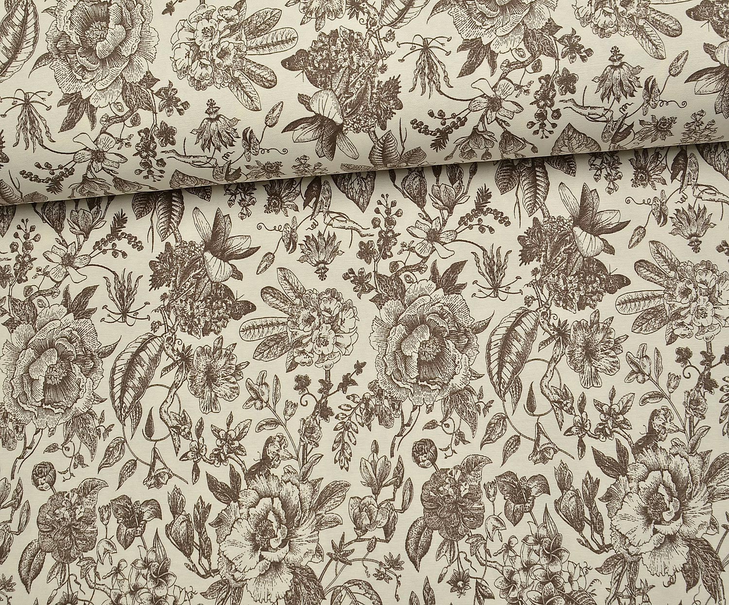 VİNTAGE BOTANİK ÇİZİM DESENLİ DUCK KETEN KUMAŞ - KOYU VİZON